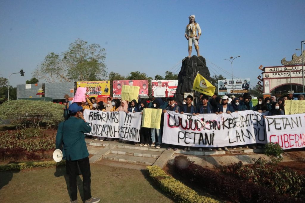 “Poin-poin Tuntutan itu berangkat dari tiga grand isu yang kita angkat. Yang pertama kita ingin adanya reformasi pendidikan, komersialisasi pendidikan termasuk hal-hal lainnya UKT tinggi dan biaya pendidikan yang tinggi kita ingin itu tidak ada kita ingin itu dikurangkan kita ingin itu disikapi dengan segera. Yang kedua kita ingin adanya reformasi di sistem kesehatan daripada poin-poin bermasalah di undang-undang kesehatan yang tidak pro kepada rakyat kita ingin itu direvisi kita ingin itu diperbaiki. Yang ketiga di sektor agraria kita ingin petani di Lampung sejahtera bagaimana terkait pupuk alokasi pupuknya harus tersedia begitupun dengan kartu petani berjaya harus tersalurkan sampai pelosok-pelosok desa karena itu janji dari Gubernur dan Wakil Gubernur kita Kemudian penggusuran lahan yang masif terjadi di Indonesia kita ingin itu segera dihentikan karena itu sangat mencederai dari sisi demokrasi sisi keadilan oleh masyarakat Indonesia” Ujar Wahyu Romadhon selaku Koordinator Lapangan.