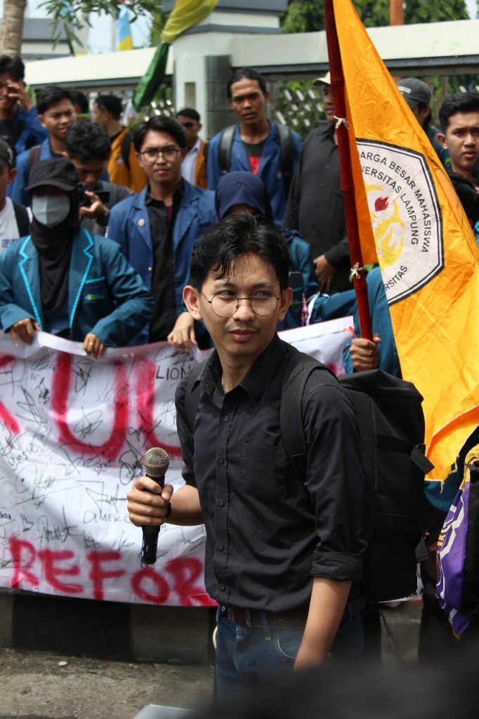 Aksi penolakan revisi Undang-Undang Tentara Nasional Indonesia (UU TNI) di Bandar Lampung menarik dukungan dari berbagai elemen masyarakat, termasuk akademisi. Salah satu penggeraknya, Refi Meidiantama, dosen Fakultas Hukum Universitas Lampung (FH Unila), turut menyuarakan penolakan melalui orasi tentang pentingnya menjaga supremasi sipil dalam demokrasi.
