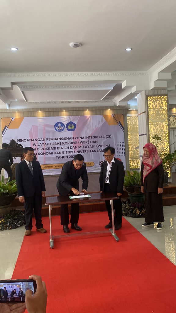 Fakultas Ekonomi dan Bisnis Universitas Lampung (FEB UNILA) menggelar acara Pencanangan Zona Integritas FEB. Acara dilaksanakan pada Senin, 19 Februari 2024 yang di mulai pada pukul 09.00 WIB.