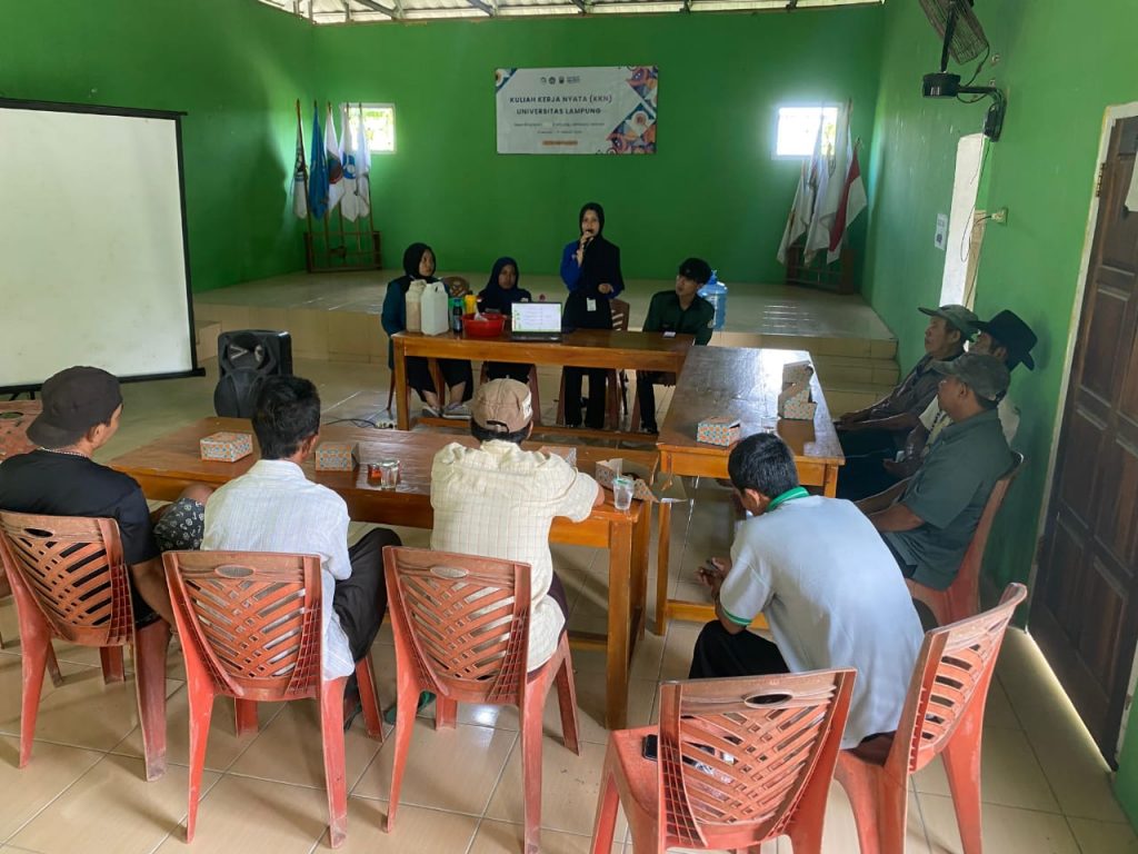 Kelompok KKN universitas Lampung periode 1 tahun 2024 di Desa Neglasari, kecamatan Katibung dibawah bimbingan Dosen pembimbing Lapangan Bapak Ahmad Saleh, S.H.,M.H. Dengan anggota 7 mahasiswa yaitu Ria Nitami (Mahasiswa S1 Ekonomi Pembangunan), Dyas Kinanti, Ula Nadya Kuntari, Bella Aulia Salsabila, Dillon Andrea Putra, Rahmat Saputra, dan Riehan Arraief melakukan penyuluhan dan diskusi bersama kelompok tani mengenai Pupuk organik cair (POC).