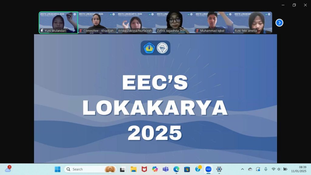 Economic English Club (EEC) Fakultas Ekonomi dan Bisnis Universitas Lampung (FEB Unila) sukses menggelar lokakarya periode 2025 pada Sabtu (11/1/25) melalui platform Zoom Meeting. Sebanyak 137 peserta, terdiri dari demisioner, anggota pakar, presidium, pengurus, komite, anggota baru, dan undangan, hadir dalam kegiatan bertema “Embark a New Odyssey to Embrace a New Beginning” ini.