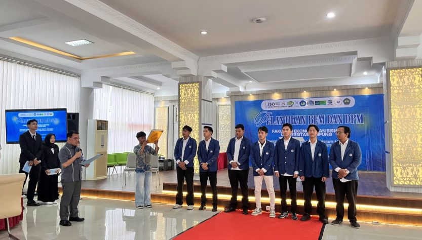 Fakultas Ekonomi dan Bisnis Universitas Lampung secara resmi melantik Gubernur dan Wakil Gubernur serta Dewan Perwakilan Mahasiswa (DPM) BEM FEB Unila periode 2026 di Student Center Lantai 1 pada hari Rabu (18/02/2026). Pelantikan tersebut mengungsung tema “Sinergi Lembaga Mahasiswa Dalam Menjaga Demokrasi dan Stabilitas Organisasi Fakultas”.