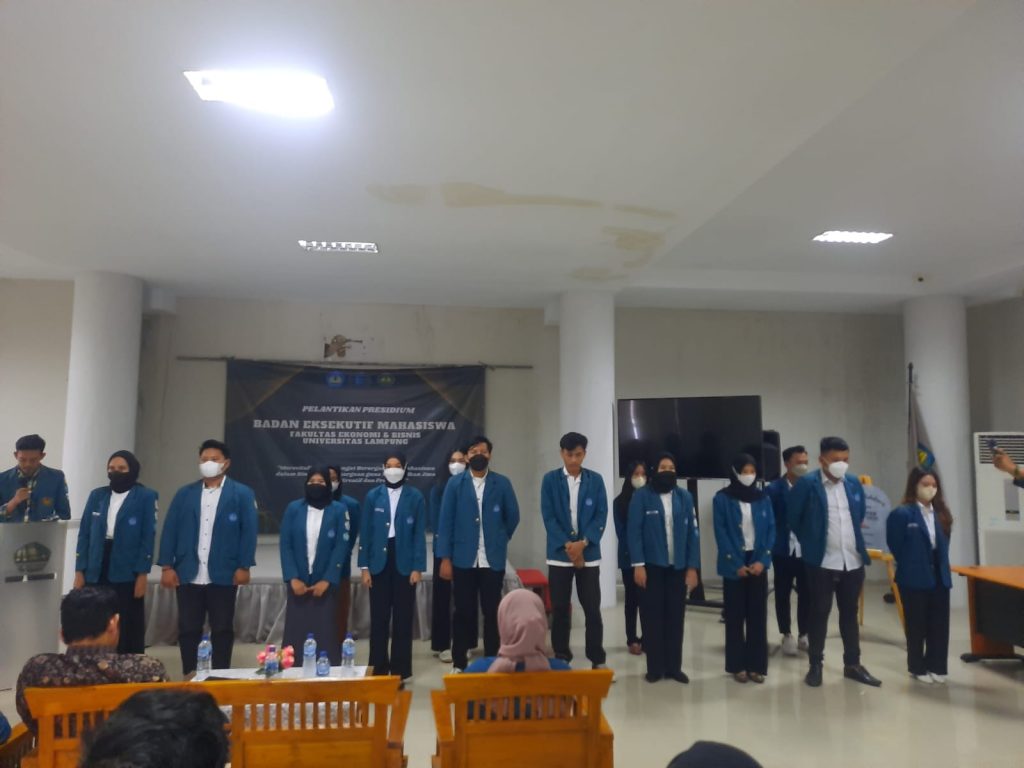 Badan Eksekutif Mahasiswa (BEM) Fakultas Ekonomi dan Bisnis Universitas Lampung telah resmi menyelenggarakan acara pelantikan presidium BEM FEB Unila masa bakti tahun 2022 pada hari Jumat, 17 Juni 2022 yang berlangsung di Aula Gedung Student Centre (SC) lantai 3 FEB Unila.